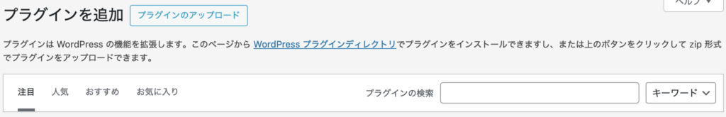 管理画面 → プラグイン → 新規追加